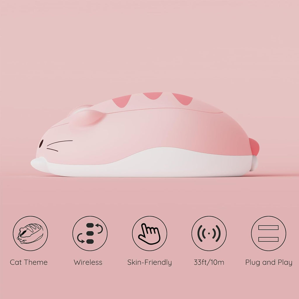 Pink Kawaii Ergonomic Design Cat Wireless Mouse