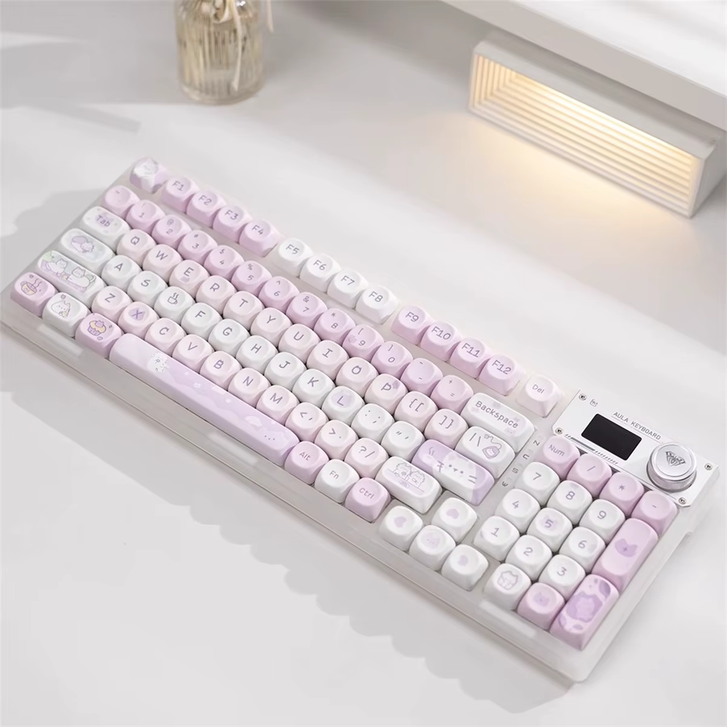 With its enchanting gradient of purple and pink hues, paired with adorable tea-drinking cat designs, this keycap set adds personality and joy to your setup. Its durable PBT construction and premium dye-sublimation process ensure a long-lasting, high-quality feel for typing or gaming.